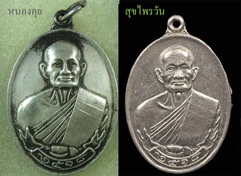 วันนี้ผมก็เลยนำภาพเปรียบเทียบตลอดจนวิธีการสังเกตุเบื้องต้น ระหว่างเหรียญสุขไพรวัน และเหรียญหนองคุย (เหรียญเนื้อเงิน) ดังนี้ครับ....