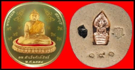 ล็อกเกตรุ่นนี้เป็นพิมพ์ทรงตาลปัตร ขนาดสูง ๓.๕ ซม. ด้านหน้าเป็นรูปหลวงพ่อสำเร็จศักดิ์สิทธิ์ อยู่ตรงกลาง บนพื้นสีเขียวหยก ลงลายทอง รูปเทวดาโปรยดอกไม้ ทั้งสองด้านขององค์หลวงพ่อ ด้านหลังบรรจุมวลสารศักดิ์สิทธิ์หลายอย่าง พร้อมทั้งพระนาคปรกใบมะขาม - โดยได้กดโค้ดรูปช้างสามเศียรเป็นโค้ดและหมายเลขกำกับทุกองค์ (ขออนุญาตเจ้าของรูปครับ) |