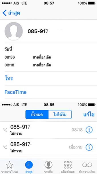 โทรติดต่อทันที(เมื่อวาน/โทรติด ไม่มีผู้รับ)และส่งข้อความไปในเมลล์บ็อกซ์