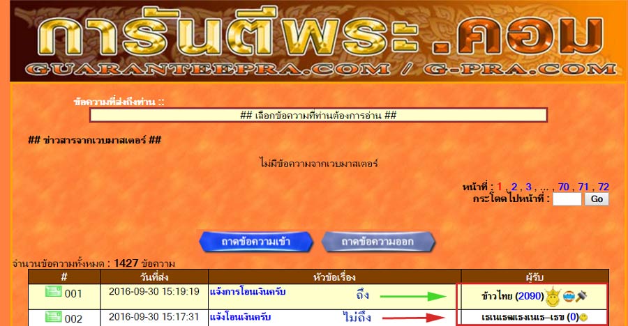 โดยให้เข้าไปดูที่กล่องข้อความออก (ตามภาพที่ผมทำเครื่องหมายมาให้) ก็จะทราบว่าถึงหรือไม่