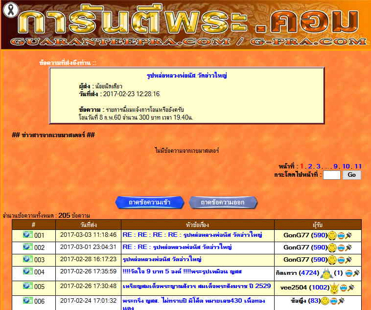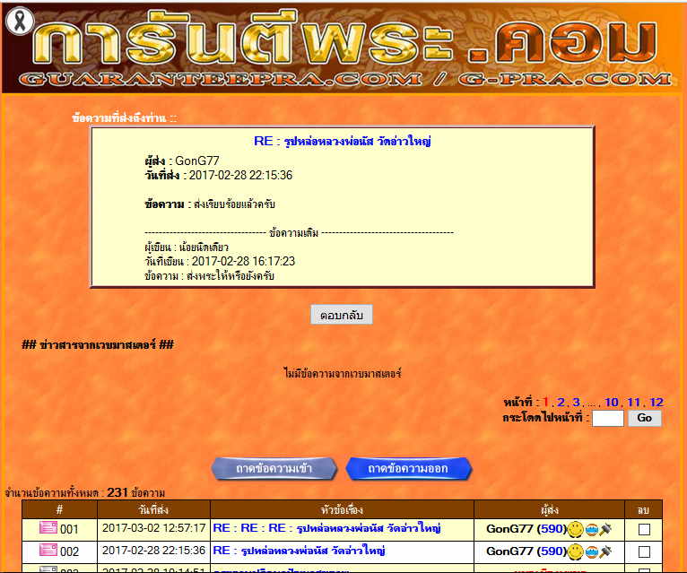 พระปิดประมูล 300 บาท วันที่ 6 ก.พ.60 ผมโอนเงินวันที่ 8 ก.พ.60 ผู้ตั้งประมูลยังไม่ส่งพระให้ ทวงถามไป บอกว่าส่งพระให้แล้ว ผมขอเลขที่ส่งเพื่อตรวจสอบ ก็บอกว่าจะรีบส่งให้ เมื่อวานโทรมาบอกว่าจะส่งให้วันเสาร์ ขอร้องไม่ให้ผมให้คำติ แต่ผมรอจนค่ำก็ยังไม่แจ้งเลขที่การส่ง ผมควรทำอย่างไรดี ถ้าถึงวันที่ 6 มี.ค.60 Feedback ก็จะให้เป็น ออโต้ |
