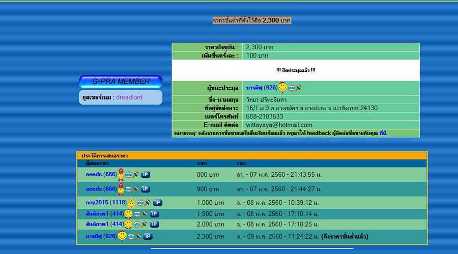 ผู้ชนะประมูล ปิดพระผมแล้วเงียบหายไปเลย ติดต่อไปแล้ว เมล์ไปก็หลายครั้ง smsข้อความไปแจ้งก็นิ่งเฉย ไม่รับผิดชอบอะไรเลย ทำมึนงง ไม่รู้ไม่ชี้ นิ่งเฉย แบบนี้เสียหน้าพระ เสียทั้งเวลา โตๆกันแล้วไม่ใช่เด็กที่จะต้องมาค่อยตาม