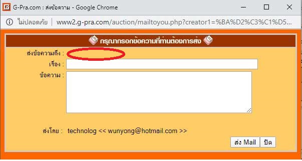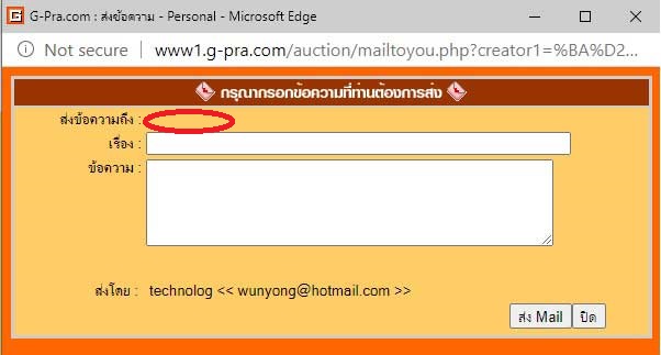 ปัจจุบันนี้การส่งข้อความให้กับยูสเซอร์ที่เป็นภาษาไทยจะส่งได้เฉพาะ โปรแกรมเว็บเบราเซอร์ (Web Browser) firefox เท่านั้น แต่ โปรแกรมเว็บเบราเซอร์ (Web Browser) ตัวอื่นๆที่ผมลองใช้ดูไม่สามารถส่งได้ สังเกตุได้จากมันจะไม่ขึ้นชื่อผู้ส่งหรือขึ้นชื่อผู้ส่งเป็นภาษาต่างด้าว ทำให้การส่งข้อความไปหายูสเซอร์ภาษาไทยส่งไปไม่ถึงผู้รับ หากท่านที่ใช้ firefox อยู่แล้วคงก็ไม่ได้รับผลกระทบอะไรแต่สำหรับท่านที่ใช้ตัวอื่นๆคงจะติดปัญหาในการส่งข้อความให้ยูสเซอร์ที่เป็นภาษาไทย วิธีแก้ตอนนี้ที่ผมใช้อยู่คือต้องเข้าไปในลิ๊งกระดานประมูลของยูสเซอร์ที่เป็นภาษาไทยแล้วกดส่งจากชื่อในกระดานนั้น หากเป็นไปได้อยากให้ วมต.ช่วยแก้ไขปัญหานี้ให้ด้วยนะครับเพื่อความสะดวกในการติดต่อกับยูสเซอร์ที่เป็นภาษาไทย ขออนุญาตท่านยูสเซอร์: บารมีครู ที่มียูสเซอร์ภาษาไทยด้วยครับในการยกตัวอย่างรูป ขอบพระคุณ วมต.ล่วงหน้าครับ หรือเพื่อนๆท่านใดมีเทคนิคอื่นๆในการส่งข้อความให้ยูสเซอร์ที่เป็นภาษาไทยรบกวนช่วยแนะนำด้วครับ ขอบคุณมากครับ