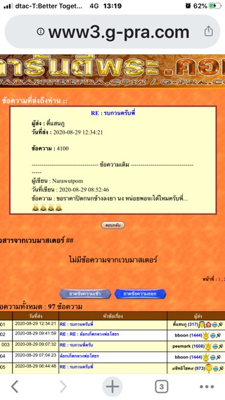 ผมส่งข้อความทางในเวปไปถามผู้ตั้งประมูลว่า ขอราคา"ปิด"พระองค์นี้หน่อยพอจะได้ไหมครับ ผู้ตั้งประมูลตอบกลับมาคำเดียว ว่า 4100 ผมก็กดไป 4100 แต่ว่ามันแค่แดง ยังไม่ปิด แต่กระผมก็ยังเชื่อใจผู้ตั้งประมูลว่าจะให้ผมในราคานั้นตอนนี้ผมจึงกดไปเป็น 7600 ให้บาดไปเลย. คำถามคือ ถ้าปิดประมูลโดยกระผมเปนผู้ชนะ แต่ราคาเกิน 4100 จะต้องทำไงต่อครับพี่ๆ รกวนชี้ทางให้หน่อยครับ......🙇🙇🙇 |