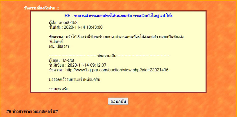 พระปิดกระทู้เมื่อวานตอน 22.07น. เช้ามาผมแจ้งให้ผู้ขายส่งออกบัตรตอน 09.12น. "มาบ่นหาว่าผมแจ้งช้า แทนที่จะได้ส่งแต่เช้า..เสียเวลา"