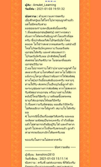 ผม จัดส่งพัสดุวันที่ 2มค.64 ผ่านขนส่งเอกชน(kerry)ด้วยเจตนาที่ว่าไม่อยากให้ลูกค้ารอพัสดุนาน