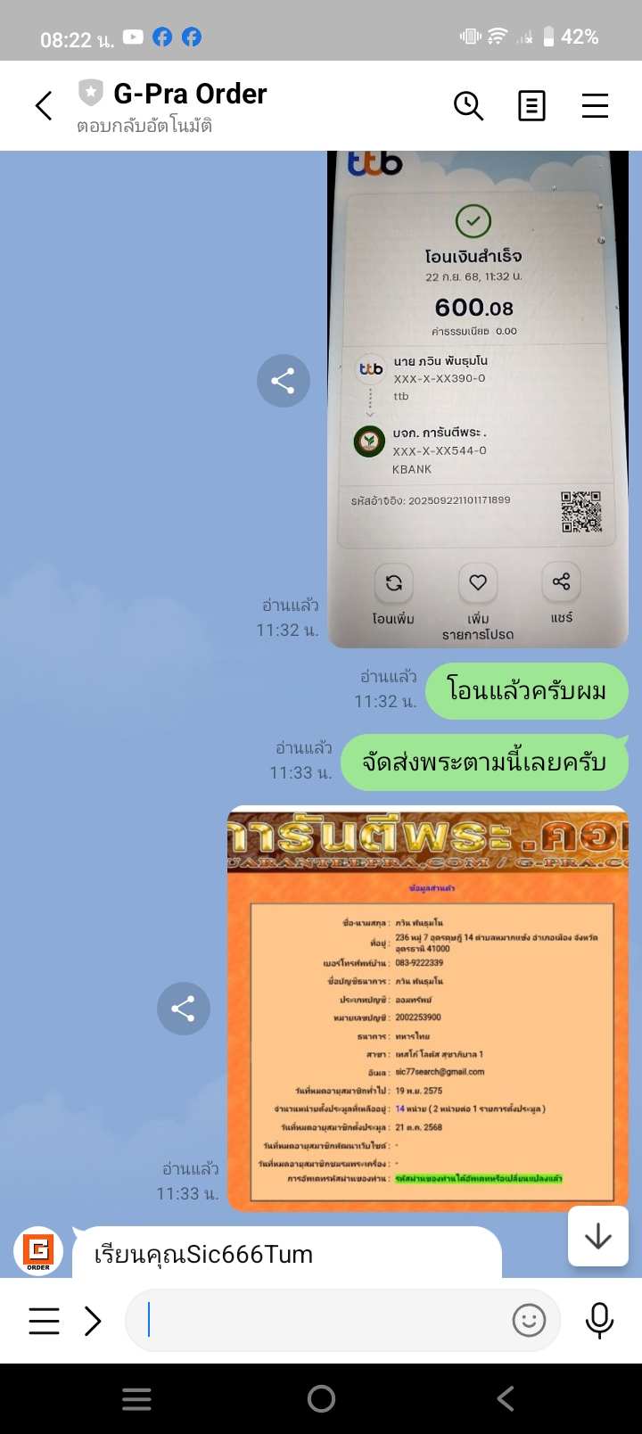 ผมได้สั่งจองและเช่าพระ ผ่านไลน์ G order