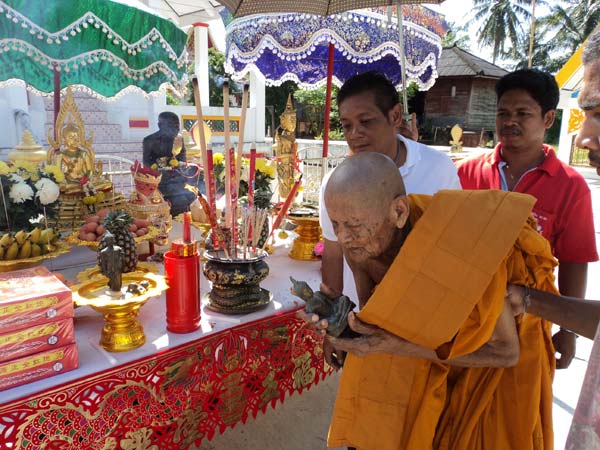 พ่อท่านพรหม จึงได้ทำพิธีบวงสรวง เพื่อขออนุญาตหลวงพ่อทวด เพื่อเททองรูปหล่อเหมือนหลวงพ่อทวด ณ วัดพลานุภาพ ......ในวันที่ 6 เมษายน 2555 |