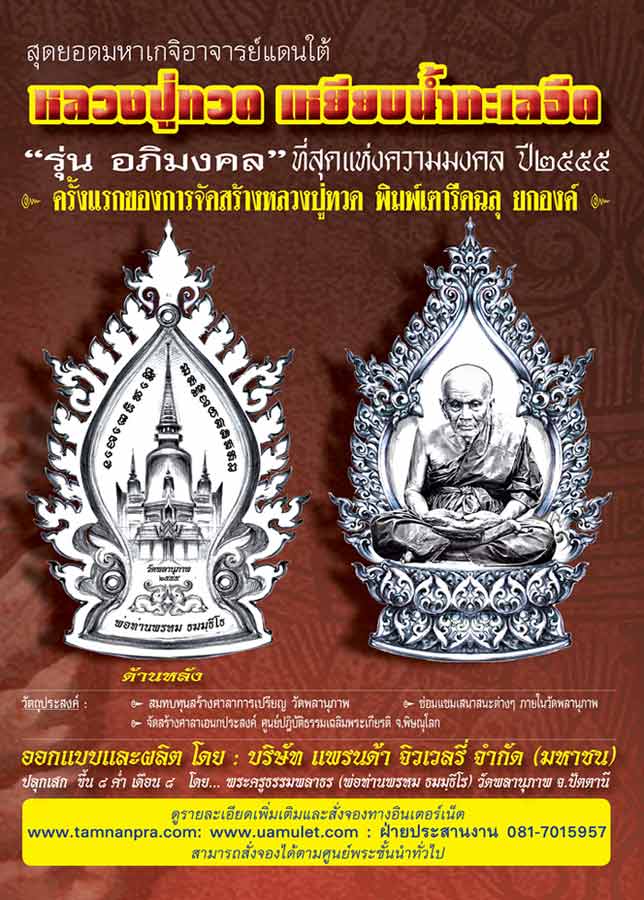เปิดจอง เหรียญหลวงปู่ทวด รุ่น อภิมงคล รายการพิเศษ ทองระฆัง ลงยา 2 ด้าน 2 สี วันที่ 29/3/55 เวลา 21:30 น.