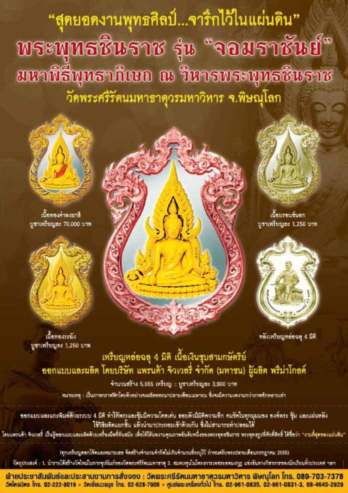 | หัวข้อกระทู้ : +++ เหรียญหล่อฉลุ 4 มิติ วิจิตรงดงาม อลังการงานสร้าง "พระพุทธชินราช รุ่น จอมราชันย์" +++ |