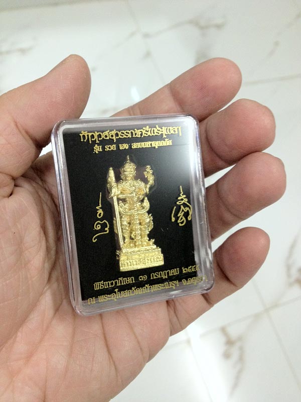 ผมได้นำรูปหล่อลอยองค์ท้าวเวสสุวรรณตรีพระเพลา เนื้อทองระฆัง โค้ดโสฬส ซึ่งจัดสร้างเพียง 699 องค์เท่านั้น บรรจุใส่กล่องพลาสติกสวยหรูซึ่งมีซองพลาสติกสวมให้อีกชั้นหนึ่ง (กันหน้ากล่องเป็นรอยขูดขีด) ยิ่งทำให้ดูสวยมากขึ้นไปอีกครับ