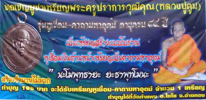 เหรียญนี้แปลกกว่าเหรียญคณาจารย์ท่านอื่นคือ ที่หน้าเหรียญเขียนคาถามหาอุตม์เป็นภาษาไทย ห่วงเชื่อมเงิน เช่าได้ที่วัดกำแพง อ.ไชโย จ.อ่างทอง การเดินทางจาก กทม.ขึ้นนครสวรรค์ ประมาณ กม.ที่ 63-64 ตรงจุดกลับรถพอดีทางเข้าวัดอยู่ทางซ้ายมือ วันหยุดเข้าพรรษานี้ลองเข้าไปกราบหลวงปู่ดูครับ |