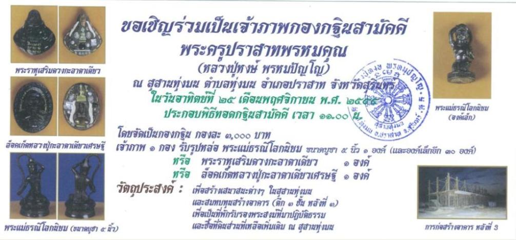 หัวข้อกระทู้ : ขอเชิญร่วมเป็นเจ้าภาพทอดกฐินสามัคคี หลวงปู่หงษ์ (พระครูปราสาทพรหมคุณ) ๕๕