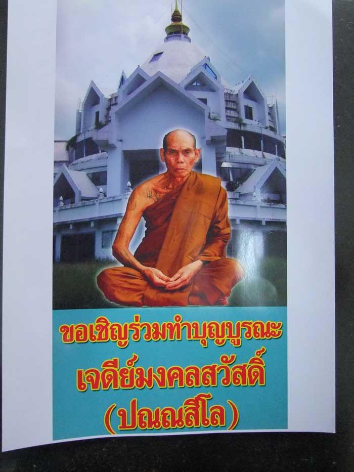 เจดีย์องค์นี้ก่อสร้างตั้งแต่สมัยที่หลวงพ่อท่านยังมีชีวิตอยู่ หลังจากที่หลวงพ่อท่านมรณภาพไป การก่อสร้างก็ได้หยุดไป เนื่องจากไม่มีทุนทรัพย์ วันนี้พี่พันจ่าเอกบุญเลิศ ลูกศิษย์หลวงพ่อได้มาหาผมและได้ฝากบอกบุญกับชาวเวปจี โดยมีพระของหลวงปู่ผ่าน ฉนทโก วัดป่าโพธิ์แก้ว2 มอบให้สำหรับท่านที่ทำบุญ 300 บ. 1องค์ จะรับเป็นพระรูปเหมือนหรือพระปิดตาก็ได้ครับ