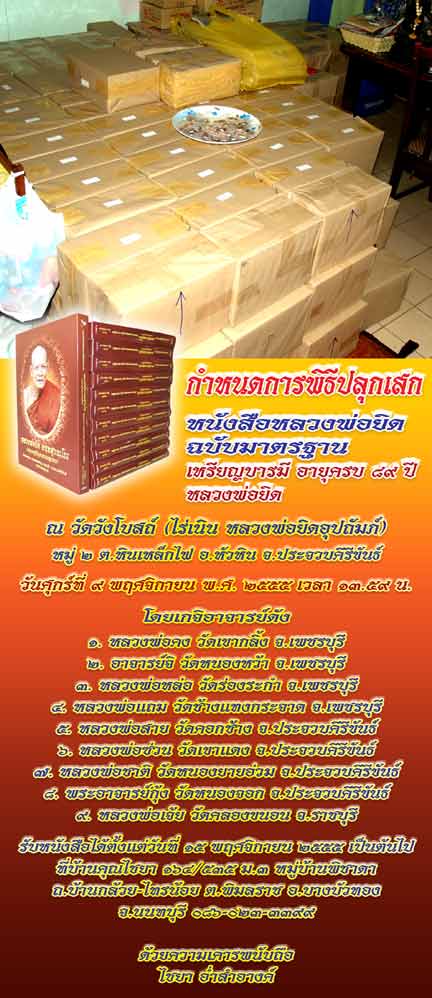 สวัสดีครับทุกๆท่าน ความตั้งใจที่จัดทำกระทู้นี้ขึ้นมาก็เพื่อแ จ้งข่าวสารทุกความเคลื่อนไหวของหนังสือเล่มนี้ ว่าต่อจากนี้ได้ ทำอะไรไปแล้วบ้าง ให้ทุกๆท่านที่ติดตามได้รับทราบความเคลื่อนไห วทุกระยะ หลังจากที่เป็นที่รอคอยของหลายๆท่านมานาน ว่าหนังสือเ ล่มนี้จะมีอะไรออกมาบ้างและให้ความรู้เพิ่มเติมอย่างไร อีกไม่นานเกินรอครับ เพราะระหว่างนี้ก็ขอนั่งเซ็นชื่อและรันหมายเลขไปเรื่อยๆ คงเหลือแต่เพียงรอกำหนดการนำเข้าพิธีปลุกเสกเพียงเท่านั้น หลังจากนั้นก็เตรียมรับหนังสือกันได้เลยครับและขอขอบคุณ เพื่อนๆ พี่ๆ น้องๆ ทุกๆคนที่แวะเวียนมาให้กำลังใจและติดตามความคืบหน้าของหนังสือเล่มนี้กันอย่างสม่ำเสมอ...ขอบคุณครับ ไชยา อ่ำสำอางค์ |