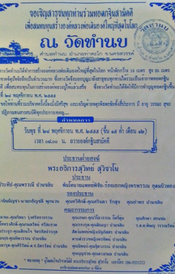 ผมขอเชิญชวนพี่ๆ รวมทำบุญเพื่อเป็นกุศลสร้างพระใหญ่ครับ วันที่ 28 พฤศจิกายน 2555 ครับผม |