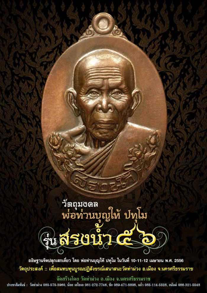 วันนี้เริ่มกระจายโปรชัวร์วัตถุมงคล พ่อท่านบุญให้ ปทุโม "รุ่น...สรงน้ำ56" ตามศูนย์ส่วนหนึ่งแล้ว ส่วนศูนย์จองที่จัดส่งทางไปรษณีย์พรุ่งนี้จะดำเนินการให้เรียบร้อย ขอบคุณครับ  |