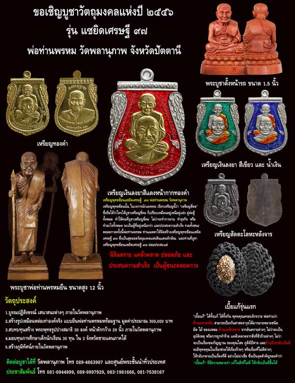 สนใจบูชาติดต่อได้ที่วัดพลานุภาพ โทร 089-4663987