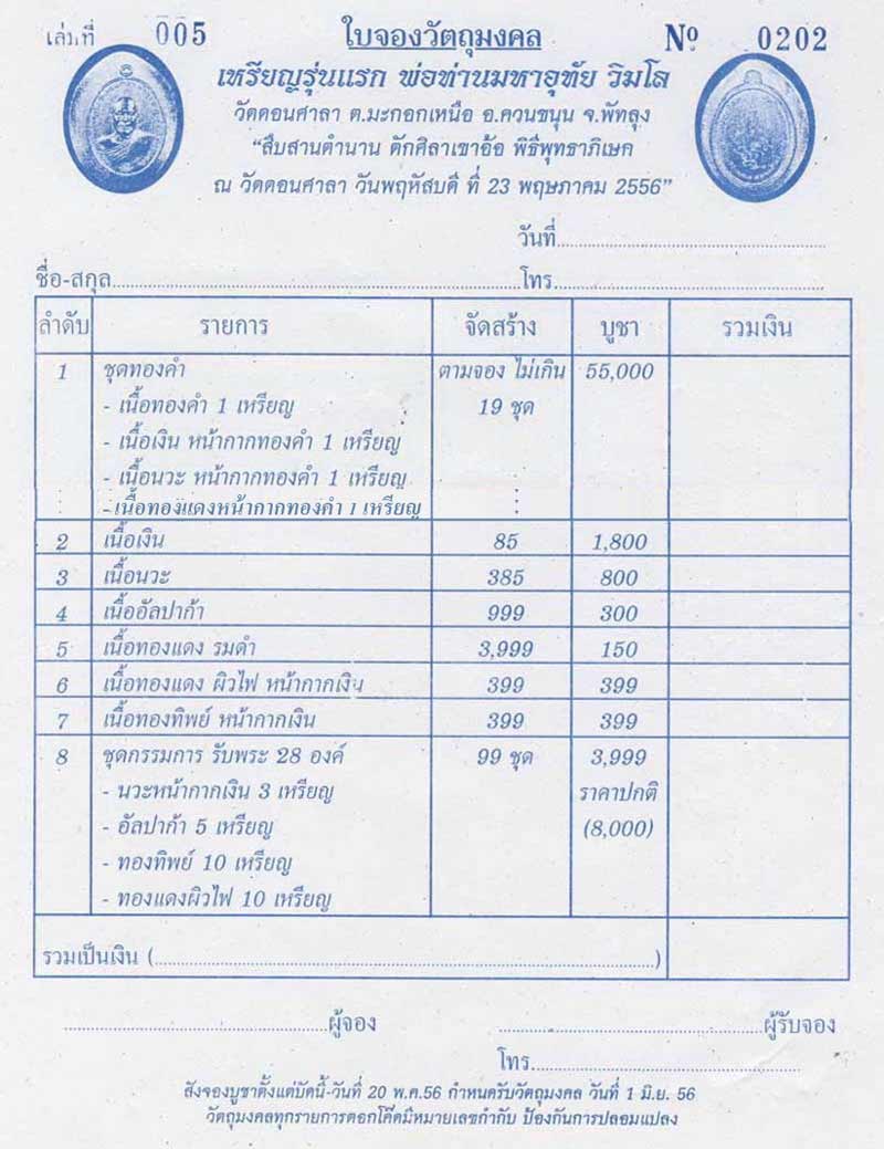 | หัวข้อกระทู้ : => ใบจองเหรียญรุ่นแรก พระอาจารย์มหาอุทัย วิมโล วัดดอนศาลา พัทลุง .......... |