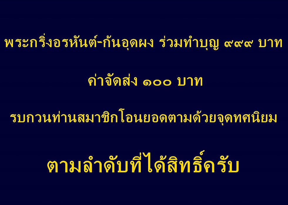 *** แจ้งรายชื่อท่านสมาชิกที่ได้รับสิทธิ์ พร้อมรายละเอียดในการโอน พระกริ่งอรหันต์ หลวงปู่คำผา ( รอบพิเศษ ) ***