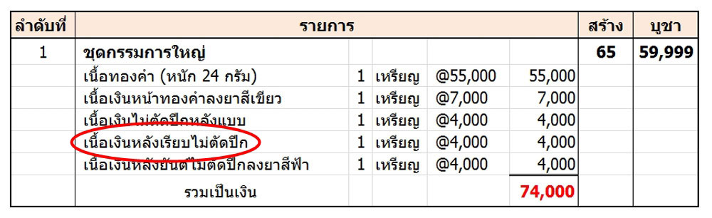 เหรียญนี้อยู่ในชุดกรรมการใหญ่ หรือ ชุดทองคำ ซึ่งมีจำนวนจัดสร้าง 65 ชุด เท่ากับว่าเหรียญเนื้อเงินหลังเรียบไม่ตัดปีกนี้ มีจำนวนแค่ 65 เหรียญเท่านั้น น้อยมากๆครับ