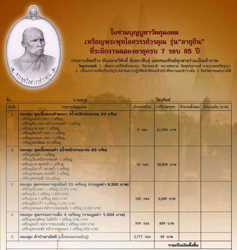 ลำดับที่ 1 ชุดกรรมการเล็ก จำนวน 1 ชุด + ค่าจัดส่ง 100 บาท รวมยอดเงินโอน 999.01 บาท (ลูกค้านอกเวปที่จองไว้ไม่โอนเงิน ผมเลยนำมาเปิดจองครับ)