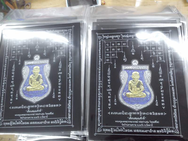 - ไม่มีจำหน่ายจัดสร้างเพื่อสมนาคุณแก่ผู้ที่สั่งจองเหรียญเลื่อนสมณศักดิ์ รายการที่ 7 เนื้อนวะโลหะ และพระปิดตาในครรภ์ เนื้อเงิน , เนื้อนวะโลหะ ในอัตรา 1 รายการ : ผ้ายันต์ 1 ผืน ครับ