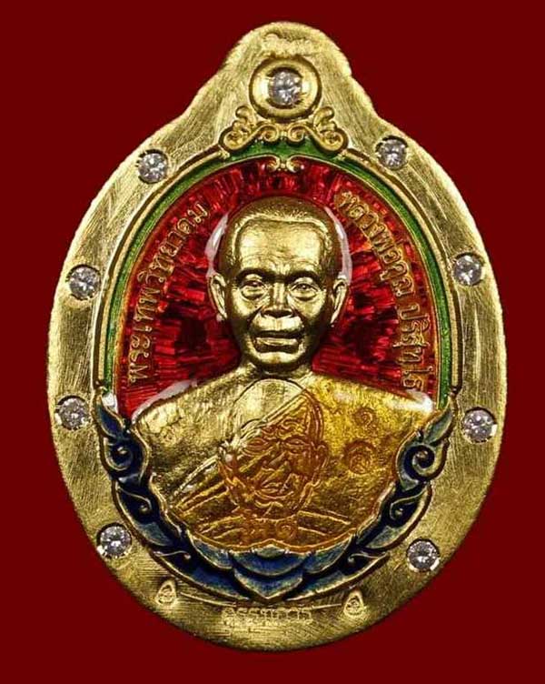 ทองคำลงยา ฝังเพชร ไม่ตัดปีก น้ำหนัก 27.5 กรัม กรรมการพิเศษหลังยันต์