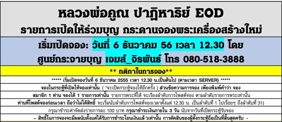กระทู้รับจองจะตั้งขึ้นในเวลาประมาณ 7.30-8.30 น. ที่กระดาน "จองพระเครื่องสร้างใหม่"