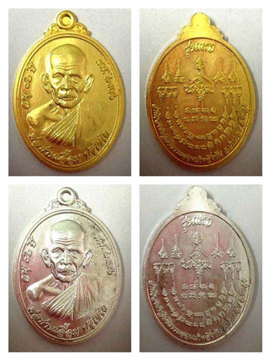 (จ้าวน้ำเงิน ทองสัตตะ ก้าวชนวนสมเด็จมหามงคลพระอาจารย์ศรีเงิน วัดดอนศาลา พัทลุง ,ปีกเหรียญทองคำ เงิน พ่อท่านเอื้อม ปชฺโชโต, ปีกเหรียญนวะหลวงปู่ทวด รุ่นห่มคลุม วัดศิลาลอย สงขลา, เม็ดทองแดง)