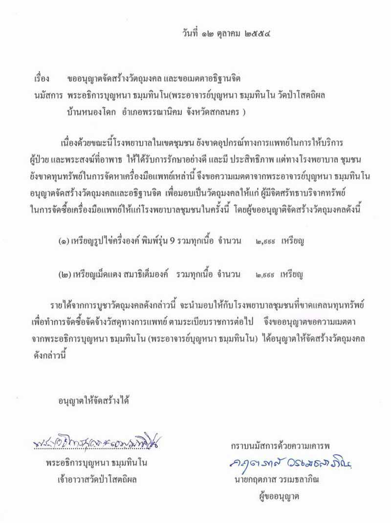 ทั้งนี้ข้าพเจ้าได้ทำการขออนุญาตหลวงตาไว้ ตั้งแต่