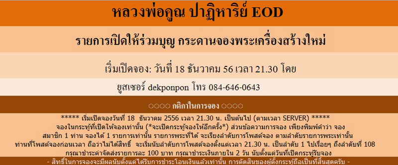 ขอแจ้งข่าวกำหนดเปิดจอง หลวงพ่อคูณ รุ่นปาฏิหาริย์ EOD "ศูนย์จอง dekponpon" รวมทั้งหมด 108 รายการ (รายละเอียดดังouh)