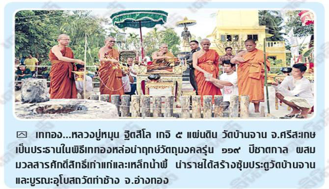 ในวาระที่ หลวงปู่หมุน ฐิตสีโล อมตะมหาเถระ ๕ แผ่นดิน วัดบ้านจาน จ.ศรีสะเกษ ครบรอบ ๑๑๙ ปีชาตกาล พระครูสุตธรรมกิจ (วัน ธัมมวโร) จัดสร้างวัตถุมงคล หลวงปู่หมุน รุ่น ๑๑๙ ปี ผสมมวลสารศักดิ์สิทธิ์เก่าแก่และเหล็กน้ำพี้ หล่อหลอมรวมกัน เททองนำฤกษ์วันที่ ๒๕ พ.ย. ๒๕๕๖ รุ่นนี้ประกอบด้วย พระกริ่งฐิตสีโล, เหรียญห่วงเชื่อม, เหรียญหล่อ, เหรียญเม็ดแตง, ล็อกเกต, ตะกรุด และเสืออาคม เพื่อนำรายได้ไปทำซุ้มประตูวัดบ้านจานและบูรณะอุโบสถวัดท่าช้าง จ.อ่างทอง