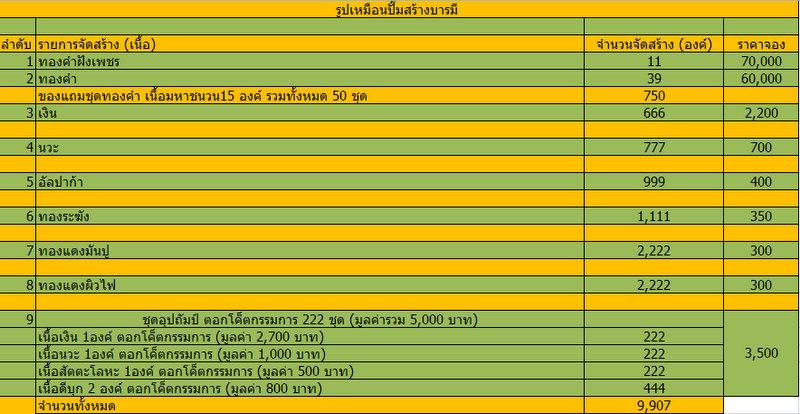 เนื่องจากเมื่อวาน เกิด ความผิดพลาด ได้นำไฟร์เก่า ที่ยังไม่ได้ปรับปรุงแก้ไข มานำเสนอ หลังจากเข้าโรงงาน ตรวจราคา ในการจัดสร้าง จึงได้มีการปรับเปลี่ยนแก้ไขให้เกิดความเหมาะ ไม่เกิน 10,000 องค์ ตามที่ประกาศไว้ จึงขอ อภัย ในความผิดพลาด มา ณ ที่นี้ ด้วยครับ