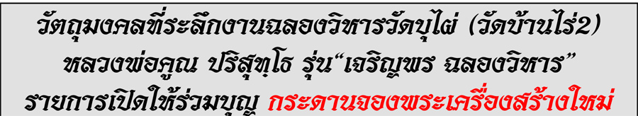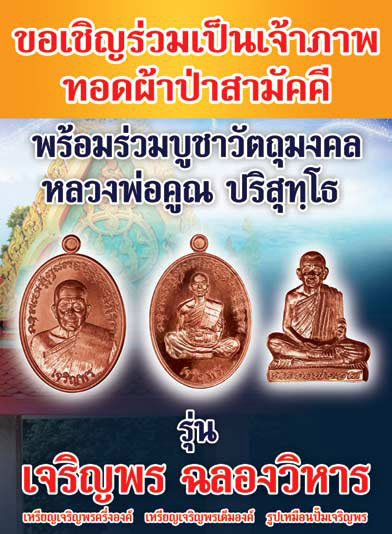 ขอเชิญร่วมทำบุญบูชาวัตถุมงคลรุ่นเจริญพร ฉลองวิหาร หลวงพ่อคูณ ... สวยแบบพอดูได้