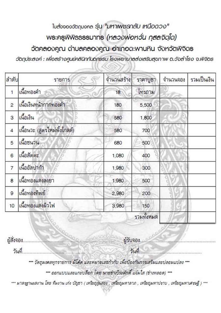 ซึ่งทีมงานและนายช่างได้เคยถวายงานหลวงพ่อมาอย่างต่อเนื่อง ทั้งเหรียญเสมารุ่น 2 , เหรียญมหาลาภหลังมหาอุตม์ , เหรียญมหาปราบ และเหรียญมหาเศรษฐี |