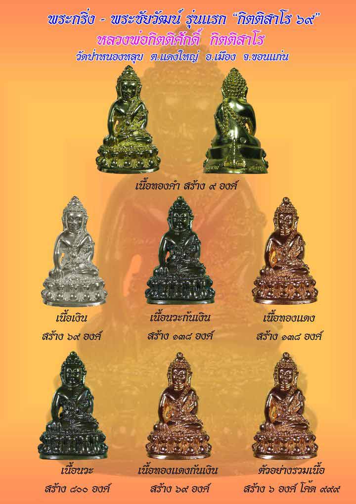 เนื่องด้วยทางวัดป่าหนองหลุบ ยังขาดปัจจัยในการจัดสร้าง แผ่นศิลาจารึกพระไตรปิฎก และศาสนะสถานทางกรรมการวัดจึงได้จัดสร้าง วัตถุมงคล รุ่น "กริ่งกิตติสาโร ๖๙" เพื่อสมทบทุนการจัดสร้างดังกล่าวให้ บรรลุวัตถุประสงค์....ขอเชิญ ผู้มีจิตศรัทธา ร่วมทำบุญ สั่งจอง วัตถุมงคล รุ่น "กริ่งกิตติสาโร ๖๙" ได้ที่กระดานพระใหม่...หรือสามารถสั่งจองได้ที่วัดป่าหนองหลุบ สอบถามข้อมูลเพิ่มเติมได้ที่ 081-4718553, 084-6032737, 084-2655252 |