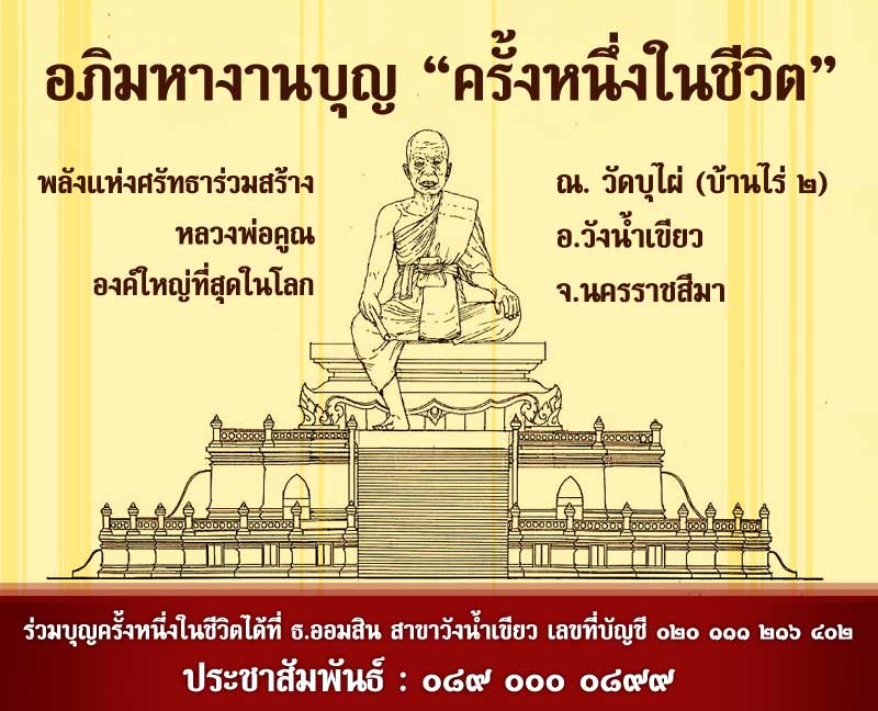 "งานบุญครั้งหนึ่งในชีวิต..ร่วมสร้างหลวงพ่อคูณ องค์ใหญ่ที่สุดในโลก"