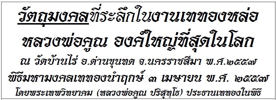 งานบุญครั้งหนึ่งในชีวิต...เชิญจองวัตถุมงคลรุ่นที่ระลึกเททองหล่อหลวงพ่อคูณ องค์ใหญ่ที่สุดในโลก
