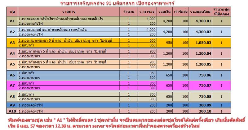 แจ้งข่าวครับ วันที่ 6 เมย.57 จะเปิดให้จอง เหรียญหลวงพ่อคูณ รุ่นเจริญพรล่าง ๙๑ บล๊อกแรกราคาวัด เวลา 12.30 ใครชอบชุดไหนก็เล็งๆไว้ครับ เนื้อล่างๆราคาเบาๆ