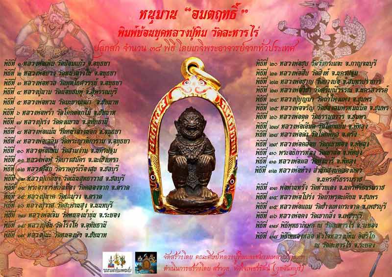 สุดยอดหนุมาน ย้อนยุค หลวงปู่ทิม อิสริโก รุ่น อมตฤทธิ์ ที่มีพิธีกรรมการปลุกเสก ตามแบบฉบับ โบราณ หลายครูบาอาจารย์ ร่วมปลุกเสก เพื่อผนึกกำลังและพลัง ไห้มีมีชีวิต สุดยอด แห่งมนต์คาถา ผู้ใดได้บูชา เปรียบเสมือนได้ว่าได้บูชารุ่นแรก ของหลวงปู่ทิม อิสริโก วัดระหารไร่ อย่างแน่นอน ผมมั่นใจว่า รุ่นนี้จะเป็นตำนาน ของสาย หนุมาน อีกหนึ่งบท ที่ต้องจารึกไว้ ในประเทศไทย