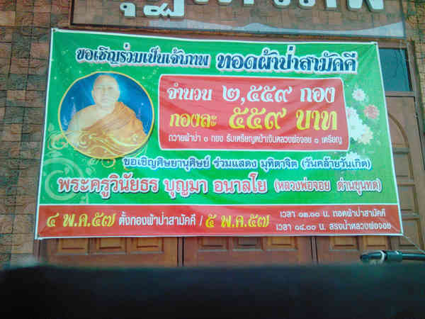 เนื่องในโอกาส วันคล้ายวันเกิดหลวงพ่อจอย พระครูวินัยธรบุญมา อนาลโย ขอเชิญชวนสาธุชน คณะลูกศิษย์ทุกท่านร่วมแสดงมุทิตาสักการะ หลวงพ่อจอย ด่านขุนทด หรือ หลวงพ่อจอย อนาลโย อีกหนึ่งเกจิอาจารย์แห่งดินแดนที่ราบสูง ในวันจันทร์ที่ 5 พฤษภาคม 2557 นี้ครับ ใครอยู่ใกล้อย่าลืมไปกันนะครับ |