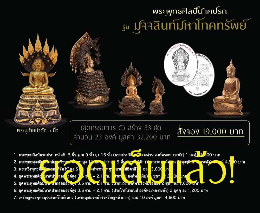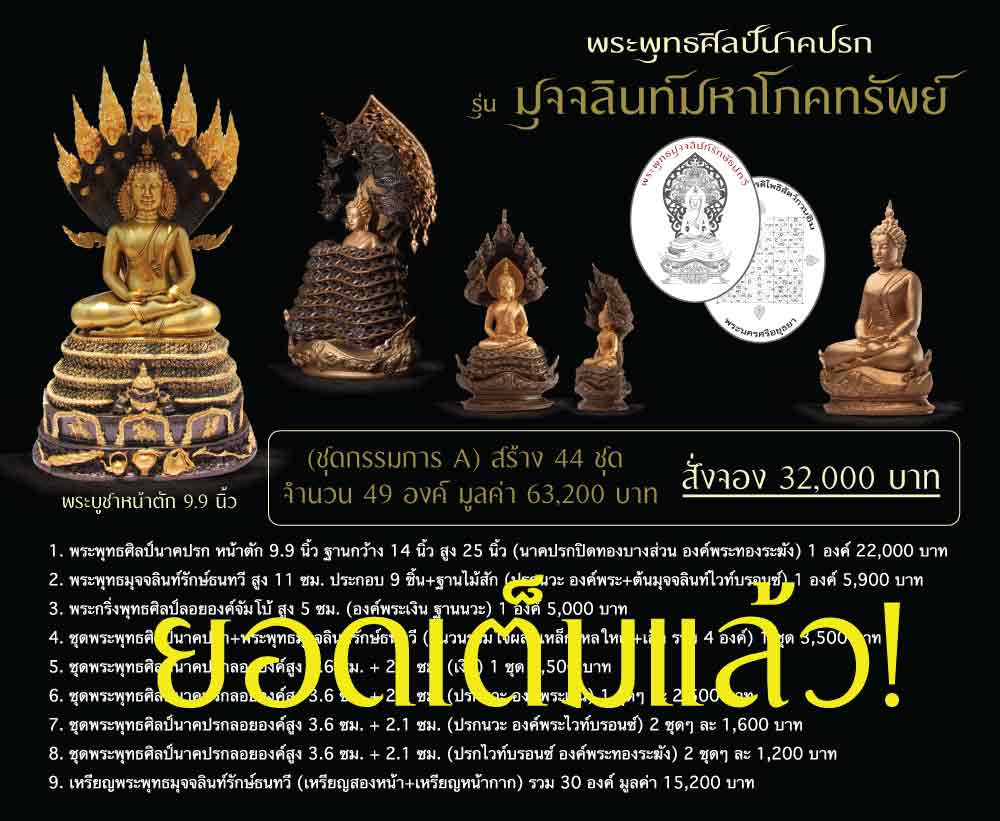 หลังจากที่ได้จัดส่งเล่มจอง, โปสเตอร์ และการ์ดชุดกรรมการให้กับศูนย์รับจอง พระพุทธศิลป์นาคปรก และ พระพุทธมุจจลินท์รักษ์ธนทวี รุ่น "มุจจลินท์มหาโภคทรัพย์" ไปเกือบครบแล้วนั้น ปรากฏว่าศูนย์รับจองตอบรับดีมากๆ ครับ ส่งยอดจองเข้ามาอย่างต่อเนื่องโดยเฉพาะชุดกรรมการทั้งชุด A, C, และชุด E จะถามกันมามากเป็นพิเศษ