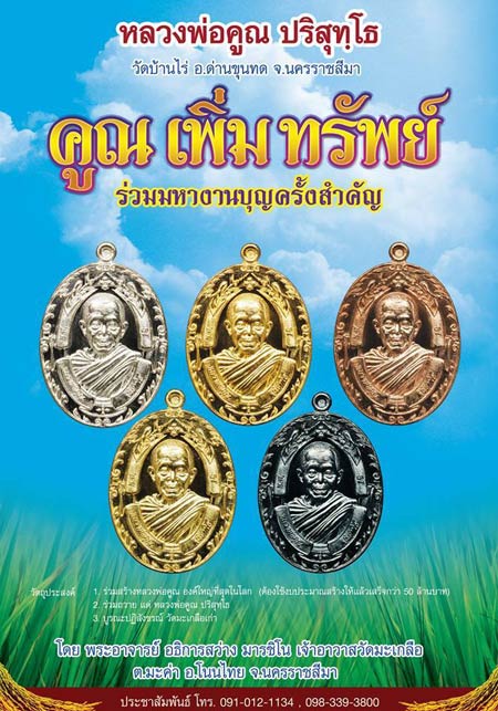 ขอเชิญผู้มีจิตศรัทธาหลวงพ่อคูณทุกท่านร่วมทำบุญจองพระหลวงพ่อคูณ รุ่น คูณเพิ่มทรัพ (ราคาพาร์)