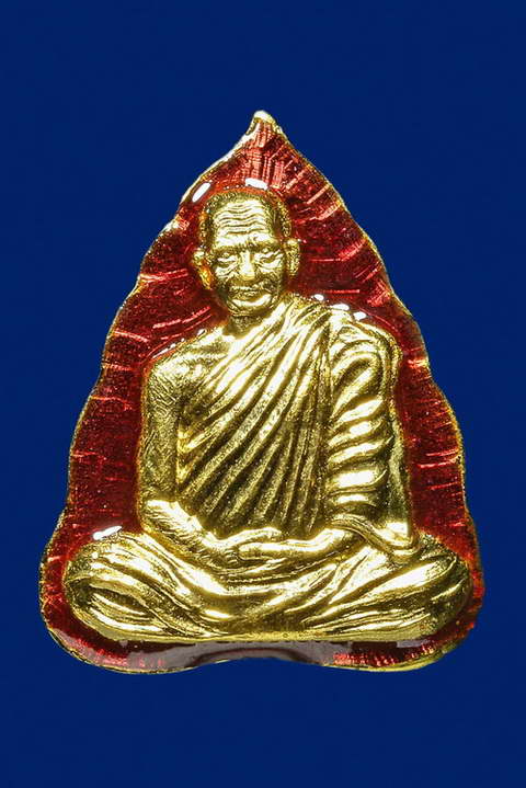 รูปเหมือนปั๊มเศรษฐี รุ่น๑ ไม่ตัดปีก(รูปใบโพธิ์) หลวงพ่อสนองชาติ วัดเย็นสนิทฯ เนื้อทองคำลงยาราชาวดี 1 ใน 19 ชุด....