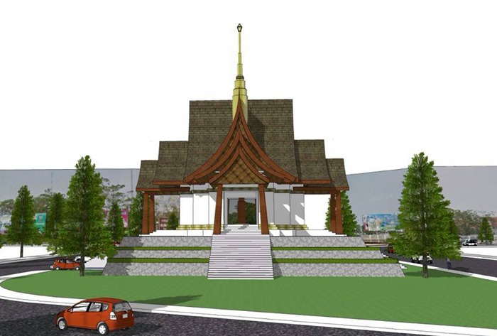 ในรูปด้านบน คือ รูปแบบของศาลหลักเมือง ที่จะนำรายได้ของวัตถุมงคล รุ่นนี้ไปสร้าง