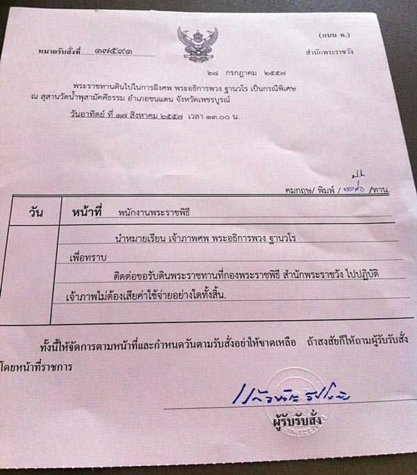 เวลา 13:00 น. บรรจุดินพระราชทาน เคลื่อนย้ายสรีระร่างกายหลวงปู่พวงสู่โลงแก้ว