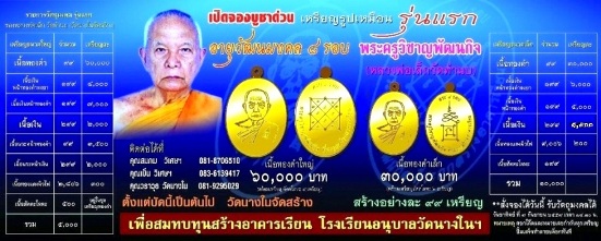 ขอเชิญร่วมบุญสั่งจองวัตถุมงคล รุ่น แปดรอบ