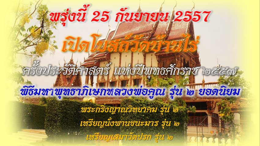 | หัวข้อกระทู้ : วันพรุ่งนี้..พบกันที่วัดบ้านไร่ เปิดโบสถ์ปลุกเสกครั้งประวัติศาสตร์ 25 กันยายน 2557 |