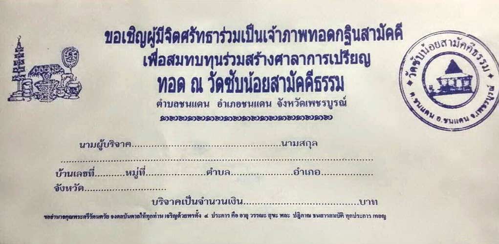 2. ทำบุญร่วมเป็นประธาน จำนวน 100 ซอง 10,000 บาท